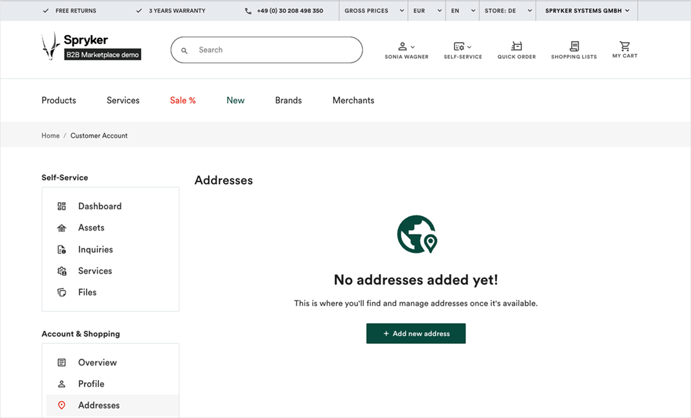 - Improved empty states for Addresses, Orders, and Returns pages in storefront to guide users with clear next steps and better first-time usability.